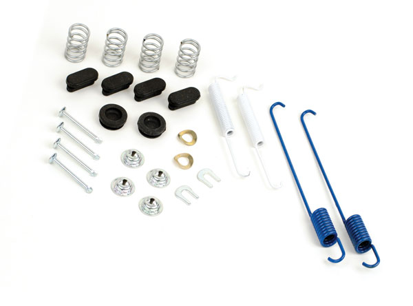 This kit includes return springs, hold down parts, adjusting screws, and adjusting springs to prevent premature brake wear and restore brakes to like-new performance.