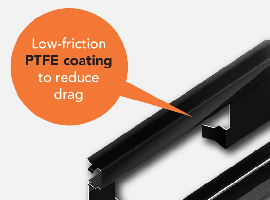 Using Polytetrafluoroethylene (PTFE) on one side of the brake clip allows the pads to slide more freely. As a result, QuietGlide® Brake Clips can reduce drag and wear on the pads and rotors, causing less friction and improved fuel efficiency.